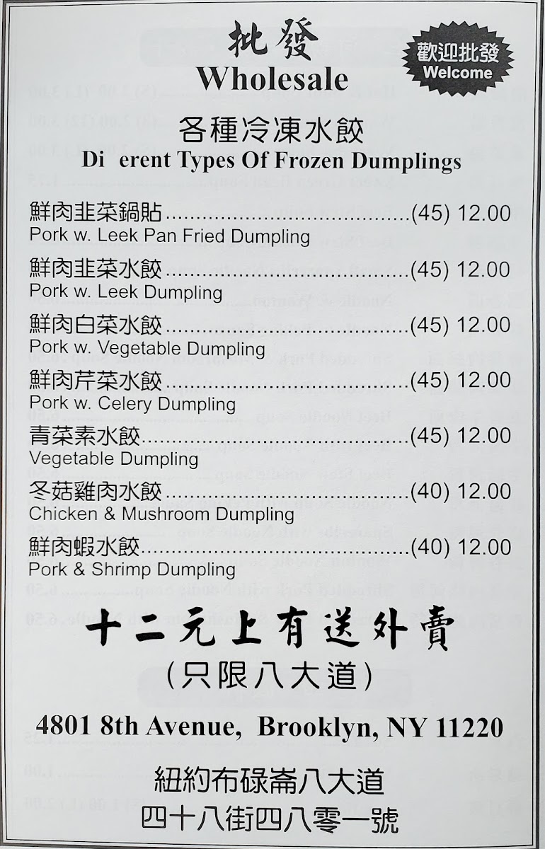 Welcome to Kai Feng Fu Dumpling House, where every bite is a journey through the rich culinary traditions of dumpling-making! Nestled at 4801 8th Ave, Brooklyn, NY 11220, our menu is a treasure trove of mouthwatering specialties designed to please your palate. Dive into our famous Fried Pork Dumplings, or try the time-honored classics like Steamed Dumplings and Vegetable Dumplings. For those who enjoy a twist on tradition, our Sesame Pancake with Beef and Fried Apple Sticks are sure to delight. Don’t forget to sample our warming Spicy Beef Noodle Soup, or indulge in a share of our savory Pan Fried Pork Buns. Whether you’re in the mood for a comforting Udon or the vibrant flavors of Bulgogi, our menu promises something for everyone. Join us soon and discover why we’re a beloved destination for dumpling lovers!